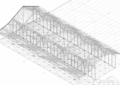 這里的結(jié)構(gòu)系統(tǒng)采用的是一個(gè)樹的分支,白色樹杈顯得整個(gè)空間更加寬闊,沿保護(hù)建筑物縱切設(shè)置是為了區(qū)別分支系統(tǒng)在其沿橫截面的增長(zhǎng)。這種新的分化與重組方案的餐飲老建筑,讓人仿佛置身于一片樹海之中。