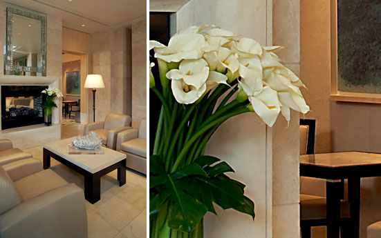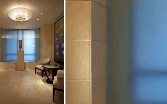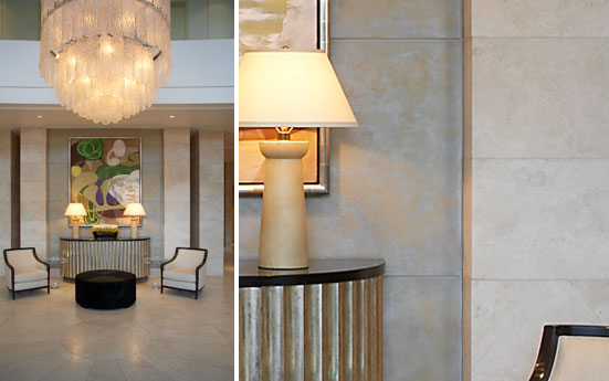 威爾夏走廊豪華公寓項(xiàng)目位于加州。項(xiàng)目的大堂地板,墻壁,柱子,壁爐和圖書館等位置用的都是意大利的天然石材,且建筑的外墻及路面也是用的天然石材。內(nèi)部的淋浴間的地面和墻面則主要用的是天然的大理石與花崗石裝修。