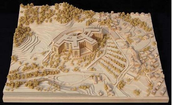 霍普金斯建筑事務所戰(zhàn)勝了22個國際競爭者,贏得了這個項目。這個地區(qū)總醫(yī)院在佛羅倫薩西北80英里的拉斯佩齊亞市(La Spezia),高度為8層,有520個床位。這個新醫(yī)院將取代該市的“圣安德烈醫(yī)院”(Sant Andrea Hospital),將舊醫(yī)院在市中心的場地用于新的開發(fā)項目。新的醫(yī)院將建造在拉斯佩齊亞市的橄欖樹林中,采用扇形布局,使向南的大多數(shù)窗戶可以看到大海。一個巨大的中庭形成一個公共廣場,有咖啡店、商店和花園。訪問者從這里可以乘電梯到達上面的樓層,并且等候區(qū)域在大樓外面。