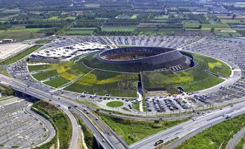 一項(xiàng)令人震驚的偉業(yè)——火山狀建筑在意大利城市娜勒落成,建筑距發(fā)生巨大變化的維蘇威火山只有投石之遙。由Renzo Piano設(shè)計(jì)的“布魯諾火山”(意大利的“好火山”)是一座史詩(shī)般的錐形商業(yè)中心,由綠色的斜面屋頂作為其“冠冕”。Piano的“好火山”為娜勒商業(yè)區(qū)——意大利中南部最最重要的貨運(yùn)終端復(fù)合體(南部邊緣)貢獻(xiàn)了極為重要的新空間。