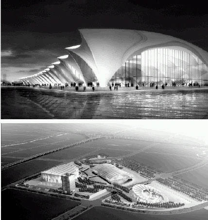 為了給整個(gè)體育中心的建筑群體創(chuàng)建出具有統(tǒng)一性和標(biāo)志性的形態(tài),重要的是給各個(gè)體育設(shè)施一個(gè)統(tǒng)一的表現(xiàn)形式。各體育場館根據(jù)不同的大小和幾何形體要求,將通過一致的材料及幾何形態(tài)構(gòu)成原則,將建筑群體構(gòu)建為一個(gè)統(tǒng)一的組群。