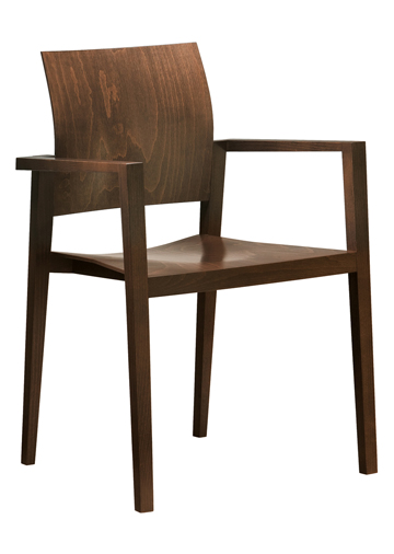 Central attribute of the stackable Lignum chair is its puristically delicate and refined appearance. It is made of solid beech that is either coated with natural substances or stained. It is available with or without armrests. The seat and back consist of three-dimensionally shaped plywood parts. Partial upholstery, attractive stain colours and elegant upholstery fabrics permit different design options for individual customer specifications.