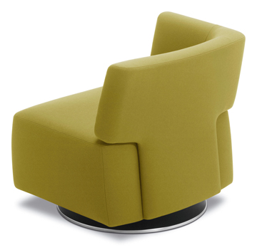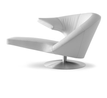 Shaped as a single flowing movement this rotating armchair becomes an appealing object in the living room. With its asymmetric form Parabolica offers three different seating options: the user is invited to sit down in a relaxed position, a “normal” position or a working position using the armrest as work surface. The armchair is available in many upholsteries and colours allowing individual variations.