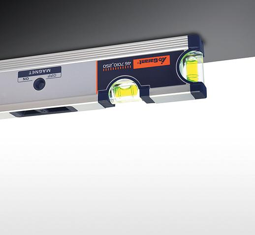 It has been hypothesised that the master builders of ancient Egypt may already have made use of water when “marking” and levelling the foundations of the pyramids. They cut a trench squarely around the planned foundation and then filled it with water, and once filled up, everything that stood out above the water surface level was then removed evenly. The successor of this idea, the level with an air bubble in a transparent capsule, the bubble level, has been in use since the 17th century – a precision tool that has been indispensible on construction sites and in other crafts ever since. This compact level merges an innovative, functional design with a language of form that is very high-value and purist. Against the background that metal workers in particular often feel that they “need a second hand”, this level is equipped with a built-in magnet. Connected securely to the workpiece, this magnet level allows users to rely on its support when marking, adjusting or mounting work. A functional advantage of this level is that its magnetic force can be switched easily between magnetic and neutral according to need. The prism-shaped contact surface enlarges the range of applications as the magnet works even on tubes and profiles, making this level highly versatile. Other user-friendly features include a bubble level that is readable perfectly from almost any angle, as well as consistent and easy-to-understand product graphics. Furthermore, this level is highly compact, robust and is well balanced in the hands of people who enjoy working with it – knowing that they can rely on its unfailing “judgement”.