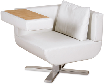 The Chillap occasional chair of the Kamasitra collection offers three well-conceived and pleasing functions: the 360-degree rotating, multifunctional armchair allows to change the desired perspective at any time; the Chillap features a flexible armrest that can be converted into a convenient support for a laptop or book as well in inside as outside position. The functional armchair is available in four different versions with diverse sub-frames of matt or polished stainless steel.