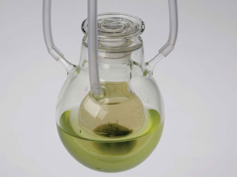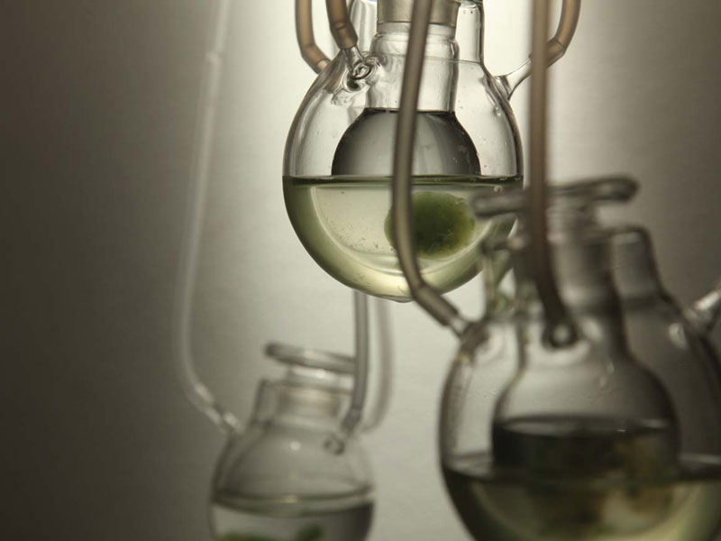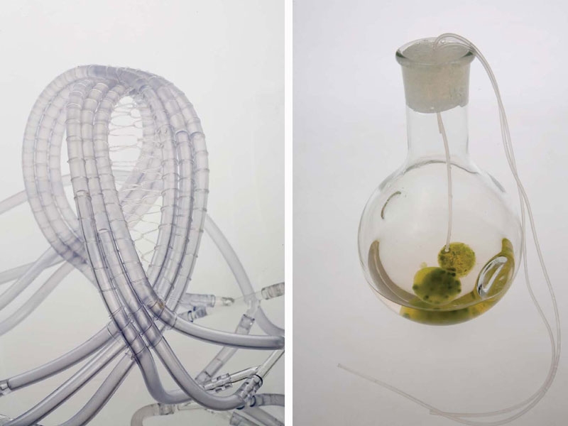 Marin Sawa的美麗作品:在我們的室內(nèi)擁有生產(chǎn)性生物,將藻類培養(yǎng)在紡織品中的綠色能源研究。她的多學(xué)科背景,使得她將紡織,生物,建筑,完美的結(jié)合了在一起。她探索,創(chuàng)造藻類可以在城市中生存的空間,制作出能夠?qū)χ車h(huán)境作出回應(yīng)的絢麗的“色彩系統(tǒng)”。她提到:“利用藻類的生物屬性,比如光合作用,制作出對環(huán)境無害的發(fā)光設(shè)計。”雖然目前大多數(shù)藻類研究集中在生物燃料和電力上,但是Marin Sawa很有信心,藻類可以進軍室內(nèi)設(shè)計功能和裝飾設(shè)計領(lǐng)域。