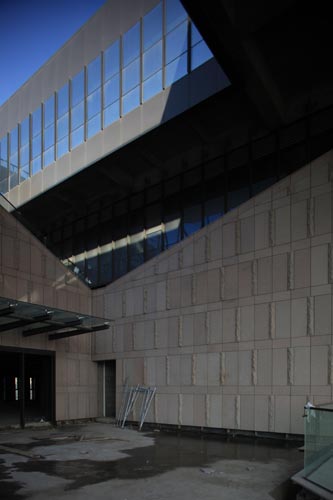 建筑設(shè)計(jì)通過(guò)對(duì)平面功能的合理布局及簡(jiǎn)潔體量的多樣組合,塑造了從室內(nèi)到室外多層次立體化的豐富空間形態(tài)。建筑形態(tài)表達(dá)上,巨大的玻璃體量由主體基座懸挑而出,猶如巨輪出海,氣勢(shì)磅礴,充分體現(xiàn)出具有海港風(fēng)貌特色的設(shè)計(jì)構(gòu)想。建筑功能依據(jù)動(dòng)靜分區(qū)及景觀利用最大化的原則進(jìn)行排布。各功能之間相對(duì)獨(dú)立,避免了不同屬性分區(qū)之間的干擾;同時(shí),通過(guò)流動(dòng)的室外公共空間及垂直交通體的聯(lián)系,各分區(qū)間又互為聯(lián)動(dòng),有效地共享了各部分資源。以簡(jiǎn)潔洗練的手法,體現(xiàn)出文化中心的海港風(fēng)貌的建筑特點(diǎn)。同時(shí)在保證建筑日常運(yùn)行節(jié)能需求的同時(shí),運(yùn)用不同特性的立面材質(zhì)表達(dá)建筑體量之間的對(duì)比,強(qiáng)化建筑造型的視覺(jué)沖擊力。立面設(shè)計(jì)也著重考慮了建筑夜景效果,運(yùn)用漫反射燈箱,燈帶,燈光噴泉等形式與建筑配合,使文化中心在夜間也能同樣成為區(qū)域的地標(biāo)建筑。