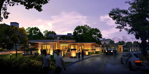 項(xiàng)目由125-170的平層公寓,及190-220的聯(lián)排別墅組成。規(guī)劃上合理分區(qū),高層組團(tuán)結(jié)合地塊形狀,呈L型布置,圍合在別墅組團(tuán)周邊,其建筑體量為別墅組團(tuán)區(qū)隔了部分噪聲及視線干擾,保證別墅組團(tuán)相對(duì)獨(dú)立。別墅組團(tuán)的布置則充分考慮地塊上保留下來(lái)的珍貴植被,通過(guò)退讓圍合等方式靈活布置建筑物,最大程度的避免建筑對(duì)原有環(huán)境的破壞,還原這片土地的文脈。
