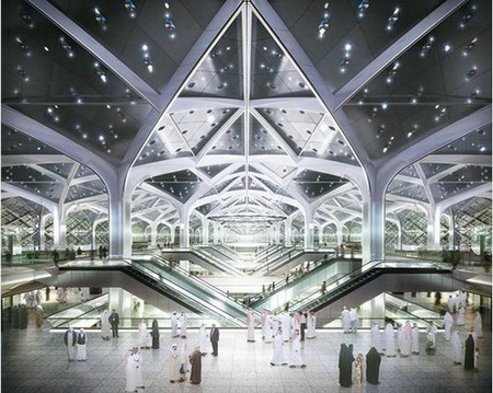 這條高速鐵路將連接麥加、麥地那、吉達等城市和正在開發(fā)的、位于沙特東部的“阿勃杜拉國王經(jīng)濟城”(King Abdullah Economic City),為到麥加朝圣的香客提供了一條新的交通線。福斯特建筑事務所將也本地建筑師達爾-艾爾里亞德(Dar Al Riyadh)和工程公司布羅 -哈帕德公司(Buro Happold)合作,建造一個“積木化設計”的車站。這個車站將由一個25米高的拱形大廳和9米高的拱形頂月臺組成。