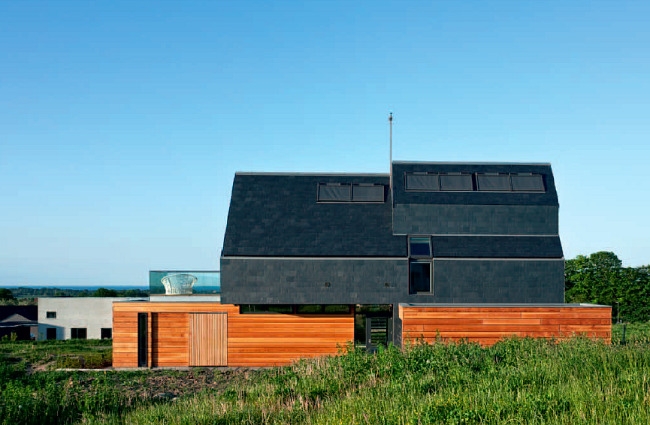 石板屋頂上覆蓋著太陽能光伏系統(tǒng)和太陽能熱水系統(tǒng),