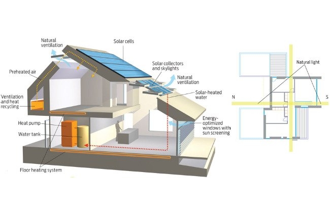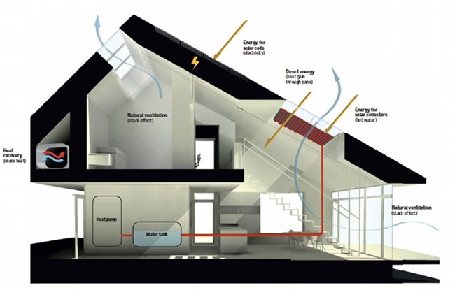 在需要時可加上一個熱泵,這會給這個超級節(jié)能的設(shè)計帶來更大的效率。