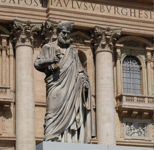 教堂門前左邊樹立著圣彼得的高大雕像。圣彼得是耶穌的大弟子,也是耶穌選中的基督教第一位教皇。[page]