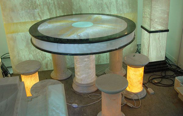 象牙玉的透光性極好,常用來做各種小藝品,如透光桌面,透光圓柱等。