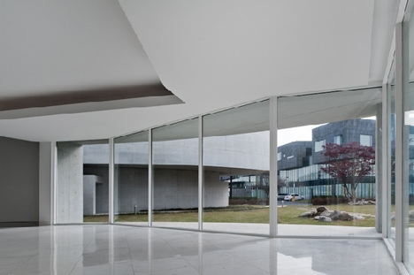 博物館造型具有流動感,在中間形成了一個院子。靈感來自一只貓的故事。Siza到現(xiàn)場還畫了畫相關(guān)草圖。