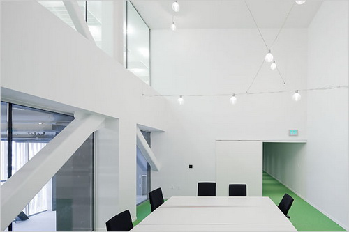 盡管這樣,“威利劇院”不如庫(kù)哈斯許多最近的作品。最明顯的是它的細(xì)節(jié)。進(jìn)入前廳的斜面由樹(shù)木、花盆和嵌入地面的電燈裝飾,使一種強(qiáng)烈的明顯的感覺(jué)變得一般化。高層臺(tái)階的墻和天花板,被表面繁茂的人工草皮覆蓋,與其余的設(shè)計(jì)構(gòu)想不相適應(yīng)。