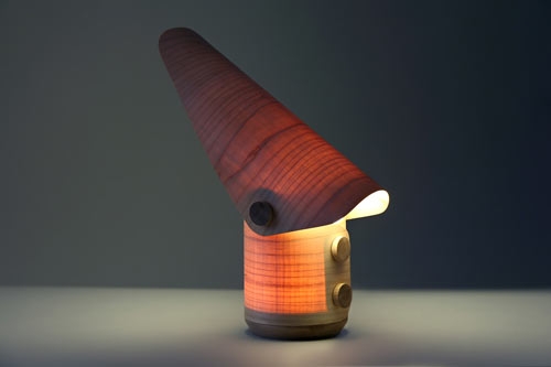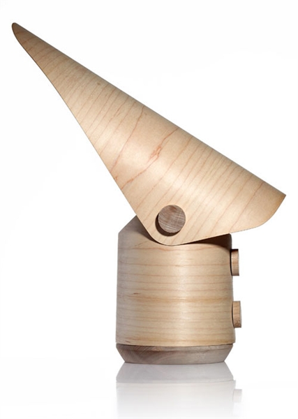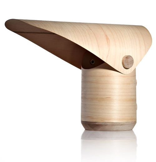 簡單,優(yōu)雅。僅僅用兩片楓木片彎曲,組合就做成了。還可以調試燈光強度。