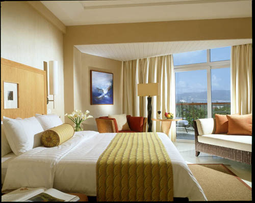 三亞喜來登度假酒店共有511間客房,包括49間套房。全部客房均配有空調(diào)、電子保險箱、國際國內(nèi)直拔電話、迷你吧和衛(wèi)星電視。所有客房極盡舒適豪華,可以觀賞到亞龍灣壯觀的全景、花木蔥蘢的熱帶花園、翠綠山景或由美國名師羅拔瓊斯二世設(shè)計的18洞的亞龍灣高爾夫球會。酒店擁有全海南島最寬敞的客房,配合典雅精致浴室,設(shè)有獨立浸浴和淋浴間,特別有天然光及「熱帶雨林式淋浴設(shè)備」?!负廊A套房」的私人陽臺正對賞心悅目的海景,客人還可以從客房的滑水梯躍入私家游泳池。「外交套房」面積達213平方米,連一個71平方米的陽臺和私人按摩浴池,可以俯瞰亞龍灣的景色。