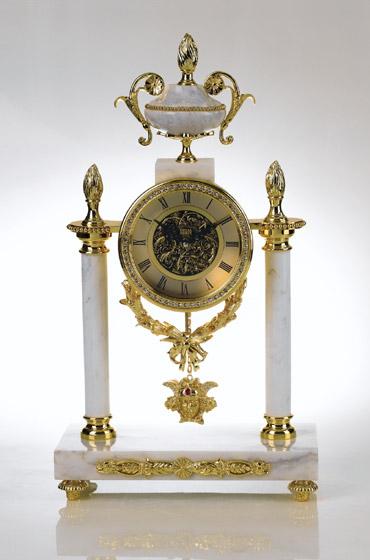 天然石材在幾個世紀以前就被廣泛應用于建筑裝飾和室內裝飾,如羅馬教堂等?,F(xiàn)代社會,隨著人們對個人性產(chǎn)品的需求增大,小塊石材的應用也越來越廣泛,如用石材和金屬加工的花瓶,用石材和玻璃加工的茶幾,用石材和木材加工的茶具。 本案是使用白色石材和金屬加工的掛鐘。