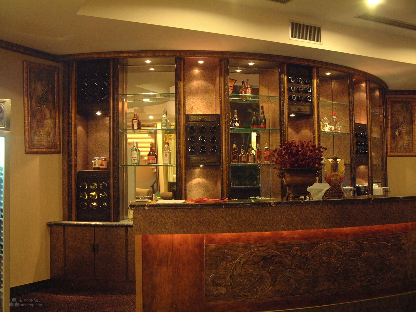 吧臺是酒吧空間的一道亮麗風(fēng)景,選料上乘、工藝精湛、在高度、質(zhì)量、豪華程度上都是所置空間的焦點,吧臺用料可以有大理石、花崗巖、木質(zhì)等,并與不銹鋼、鈦金等材料協(xié)調(diào)構(gòu)成,因其空間大小的性質(zhì)不同,形成風(fēng)格各異的吧臺風(fēng)貌。從造型看有一字形、半圓形、方形等,吧臺的形狀視空間的性質(zhì)而定,視建筑的性格而定。酒吧的吧臺是其區(qū)別于其它休閑場所的一個重要環(huán)節(jié),它令人感到親切和溫馨,潛意識里傳達(dá)著平等的觀念。與吧臺配套的椅子大多是采用高腳凳,尤以那類可以旋轉(zhuǎn)的為多,它給人以全主位的自由,讓人放松情緒。