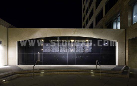 外部的觀景小路采用了Sunset Beige花崗巖和Impala Black花崗巖。該建筑的紀念墻主要采用Black Absolute花崗巖,以土耳其經(jīng)典洞石鑲邊。