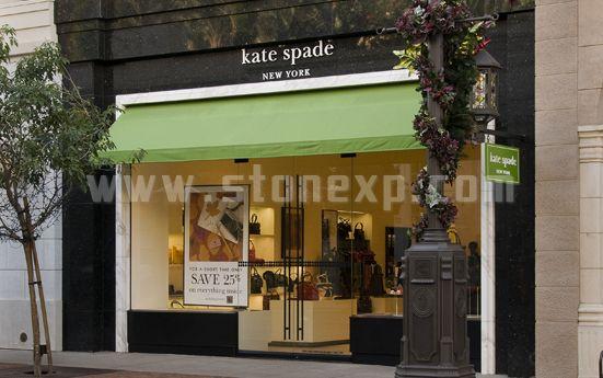 Kate Spade 的店面采用Emerald Pearl花崗巖,并以Calacatta Gold大理石鑲邊。True Religion的店面則采用Light Sienna Beige覆蓋外墻,Guess小商店采用了Dorado Classic灰?guī)r。