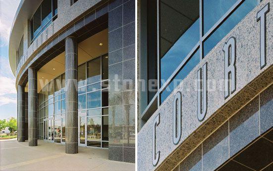 法院的圓柱和墻壁的裝飾充分展示了石材之美。其外部裝飾主要采用Caladonia花崗巖,內(nèi)部電梯帶的裝飾采用了Rosavele花崗巖。