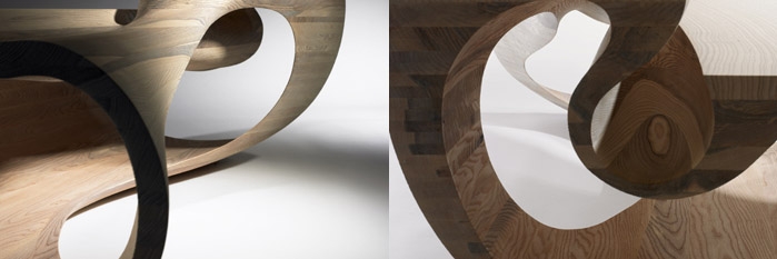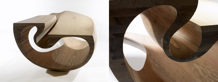 In this series of work I have stripped wood into thin layers, manipulating and reconstructing these layers into free form compositions. I then shape through the layers to reveal not alone the honesty of the structure but the sculpted form which is a unique collaboration between man and material.