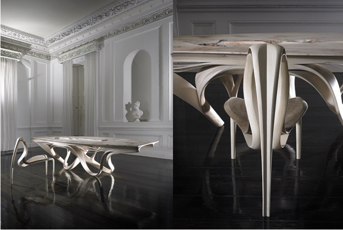 這個系列,都是由很薄的木材制成飛逸造型。老實(shí)說這些層層造型并不顯孤獨(dú),其雕塑型的造型反映出人和材料的獨(dú)特協(xié)作。