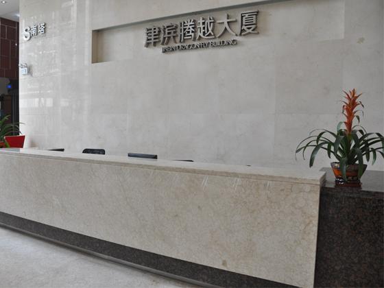 津濱騰越大廈前臺設(shè)計,米黃大理石應(yīng)用前臺