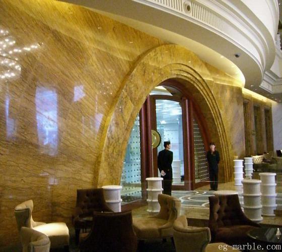 深圳大中華喜來登酒店 酒店大堂墻面拱形大門設(shè)計時充分考慮到石材本身的紋理變化
