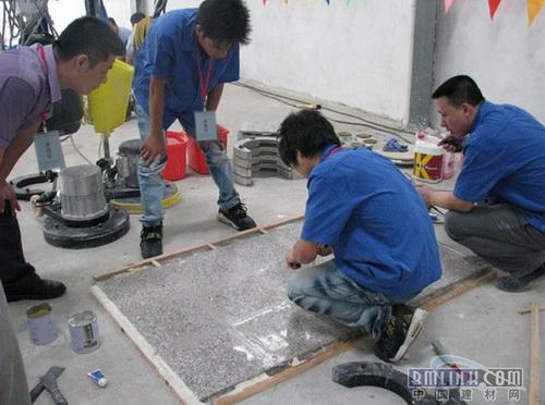 賽前,各參賽企業(yè)認(rèn)真?zhèn)滟悾盒遁d和安裝養(yǎng)護(hù)器材、清理和填縫石材……,賽場上,各參賽企業(yè)使出渾身解數(shù),充分施展各自先進(jìn)的石材護(hù)理設(shè)備與石材防護(hù)、調(diào)色填縫、打磨、拋光、晶面處理等技術(shù)方法,讓人目不暇接,嘆為觀止。