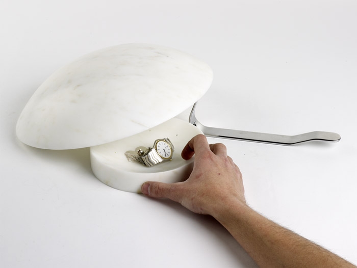 一個非凡的儲物盒,白色大理石材質(zhì),如同雕塑般。需要用一個類似杠桿的器物撬開。