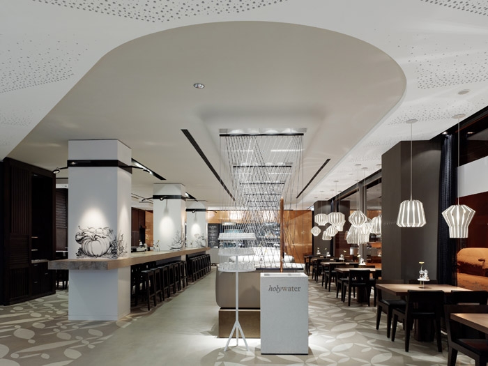 Holyfields是一個具備全新餐飲理念的餐廳。業(yè)主委托設(shè)計師為其設(shè)計獨特的,模塊化的形象與空間。憑借其創(chuàng)新的餐飲理念,Holyfields為挑剔的城市客戶帶來全新的美食系統(tǒng)。這里的食物滿足快速,美味,有營養(yǎng)的特點,同時這里視覺沖擊力也夠強。不同的座位區(qū)滿足了各種客人的需求,不論是出來吃個便餐,朋友小聚,又或是進行更大的聚餐。