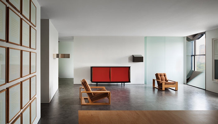 Donald Judd), the tri-tone desk by Jean Prouvé and the entire collection not only breathe,