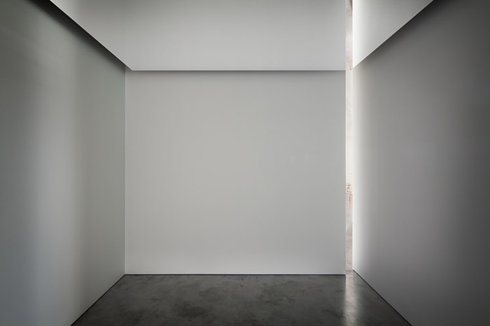 the white walls. As if levitated, the reflective metal sheet gives the entry unfathomable