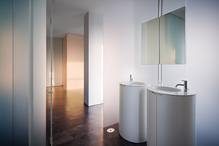 understated and self-confident as a purist sculpture. Even the bathrooms, partially enclosed