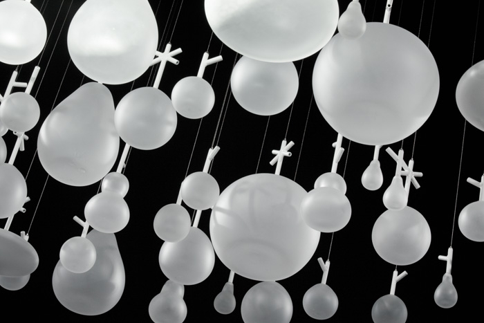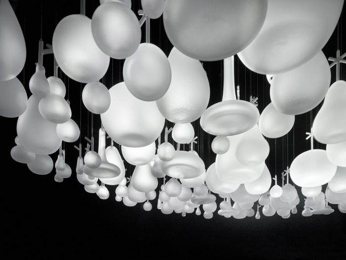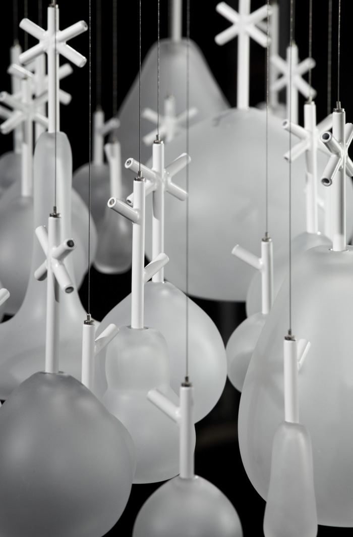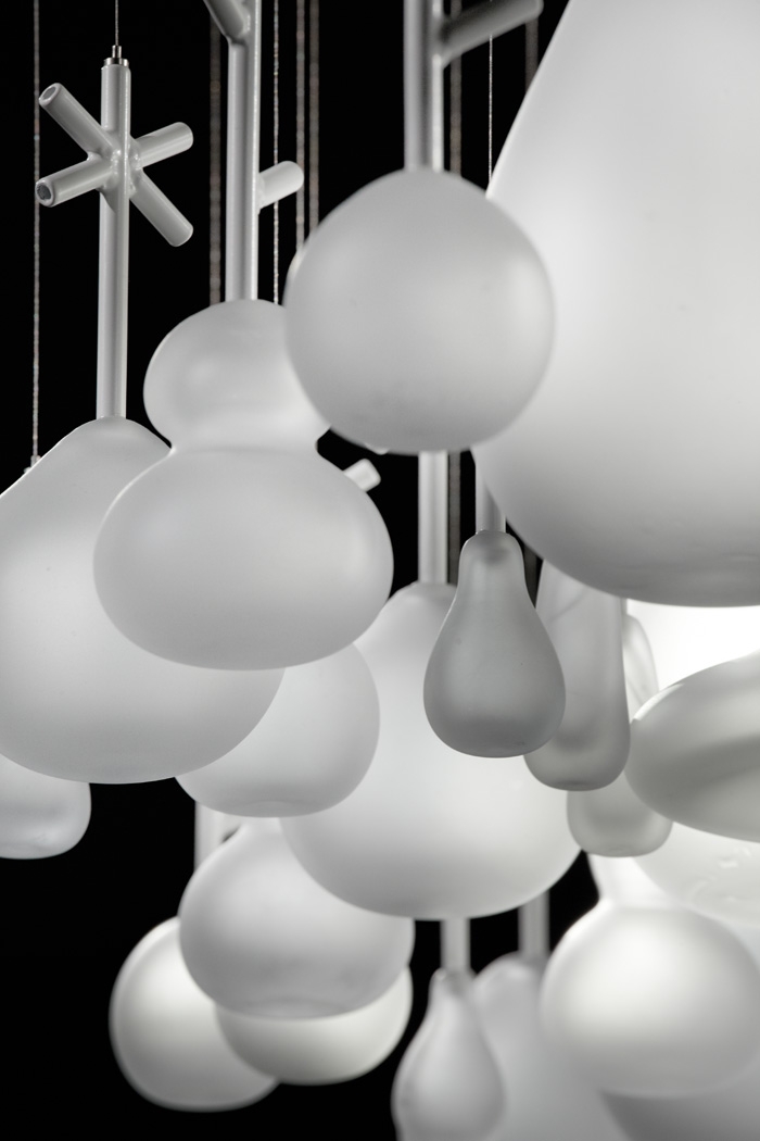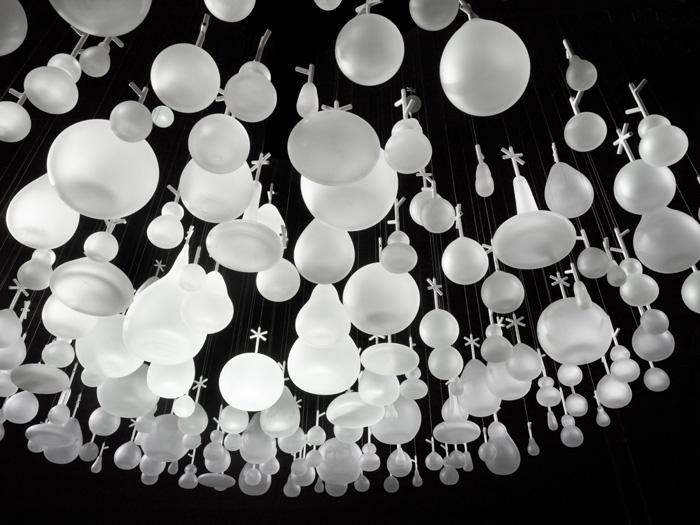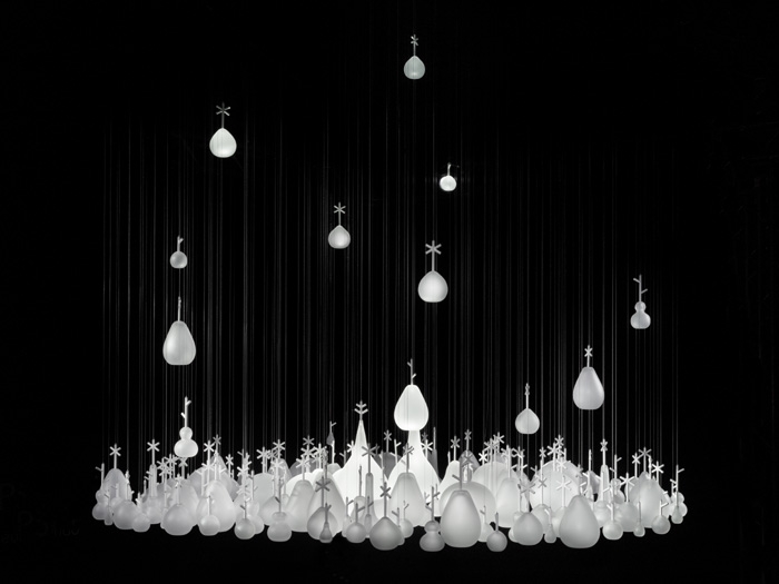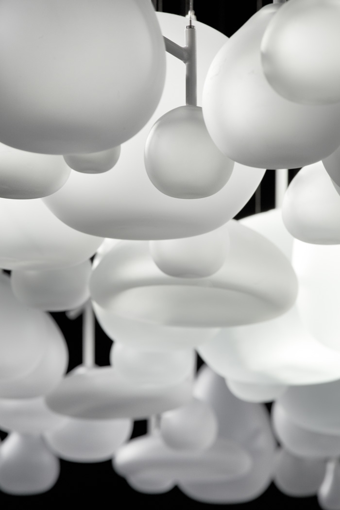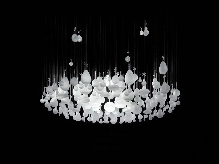 在今年2011米蘭設(shè)計(jì)展覽上,日本設(shè)計(jì)公司Neodo的這件作品展示了捷克波希米亞玻璃制造商Lasvit吹制玻璃工藝品絕美的藝術(shù)性。Neodo抽到的主題是“繭”,將表達(dá)一種模糊,虛幻的玻璃魅力,同時(shí)要求清新新穎。設(shè)計(jì)朝著俏皮的風(fēng)格發(fā)展,