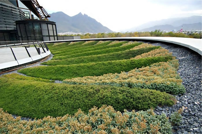 博物館的屋頂綠化堪稱(chēng)拉丁美洲最大屋頂綠化系統(tǒng)。屋頂綠化有效的降低建筑的視覺(jué)沖擊力。高爐