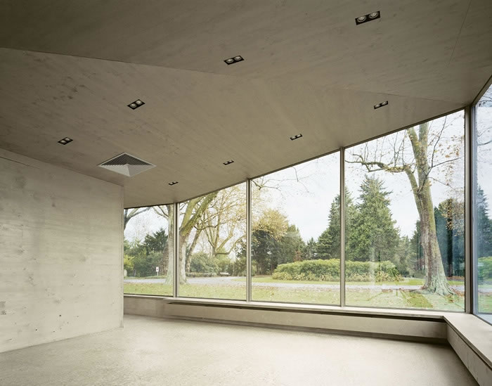 迪倫鎮(zhèn)東部的墓園已開放成為公共公園,咖啡廳就位于這里。墓園曾經(jīng)舉行過大大小小的葬禮,期望這個(gè)新的咖啡廳成為一個(gè)日常空間,人們在這里一起交流,回憶,傷感或者獨(dú)處。人們可以在這里發(fā)現(xiàn)一個(gè)多樣紛呈的天花板。