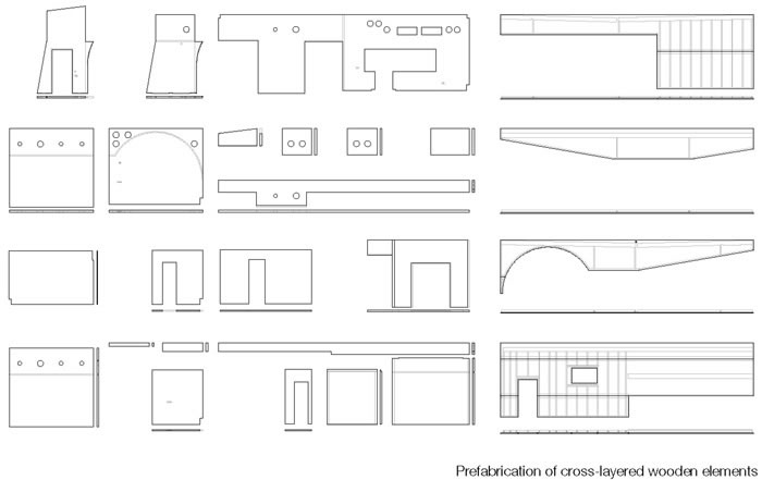 formed by Kerto panels, which also bear largeformat panes of glass;