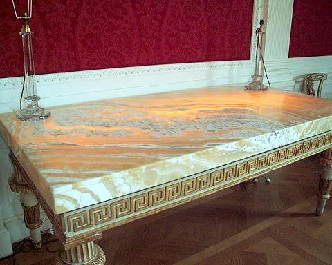 桌子臺面板 這個(gè)設(shè)計(jì)的獨(dú)特之處在于充分利用石材的透光性 相關(guān)品種推薦: