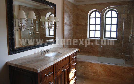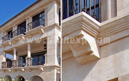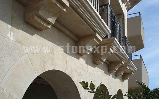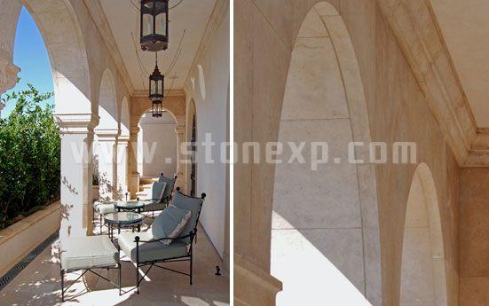內(nèi)部裝飾主要運(yùn)用Massangis French 石灰?guī)r,此外,圓柱,墻體,檐口,陽臺(tái)地板也用到此石材。整個(gè)別墅內(nèi)部裝飾用到了10至12種石材:大理石,石灰?guī)r,板巖,鵝卵石等。