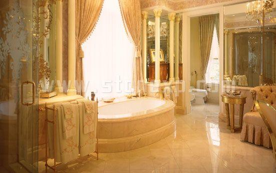 該建筑將Rosa Aurora和Botticino Classico大理石結合,品質絕佳,工藝精湛。采用Azul Macauba大理石與Beige 大理石鋪設的地板精妙絕倫。