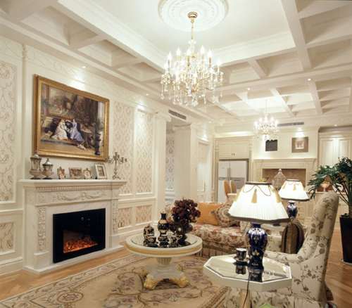 小客廳以樓梯與愛(ài)奧尼柱作為背景墻,很好得利用了別墅剩余空間,通過(guò)走廊上折疊門的分割,這個(gè)空間完全可以獨(dú)立出來(lái)使用。而十芳殿的“養(yǎng)性”的理念,由遍布各處的水彩、油畫得以充分得體現(xiàn)。