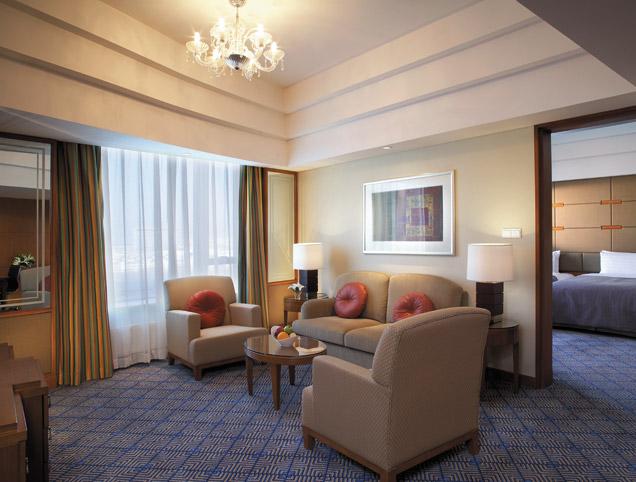 酒店擁有現(xiàn)代典雅的客房與套房共360間,房間平均面積超過38平方米,另設(shè)有11套酒店式服務(wù)公寓以滿足不同賓客的需求??头亢廊A舒適,為賓客提供一系列精致客用品和一流服務(wù),從房間內(nèi)還可以飽覽繁華市容或蔥郁的園林景致。
