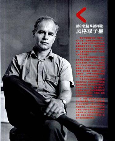 就在“鳥巢”方案被2008年奧運(yùn)會中國國家體育場設(shè)計(jì)競賽評委會認(rèn)定為在世界建筑史上具有開創(chuàng)性的意義,并被確定為重點(diǎn)推薦實(shí)施方案之后,它的總建筑師、2001年普利茨克獎得主赫爾佐格與德梅隆從瑞士來到北京,享受著這一榮譽(yù)帶來的巨大喜悅,并投入緊張的工作。4月2日,德梅隆抽出時間,接受了新華社記者的采訪。