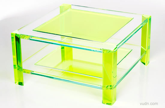 Alexandra Von Fürstenberg根據(jù)世界上的流行趨勢設計的限量版的桌子,設計師采用透明合成樹脂作材料,利用各種絢麗的色彩做為桌子的裝飾。