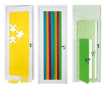The idea of this project is to use the common door as a way of bringing to reality the connection between two worlds: the children’s room (the fantasy world) and the rest of the house (the adult world). Thinking about the funny ways of passing through hurdles, resulted in three different doors.