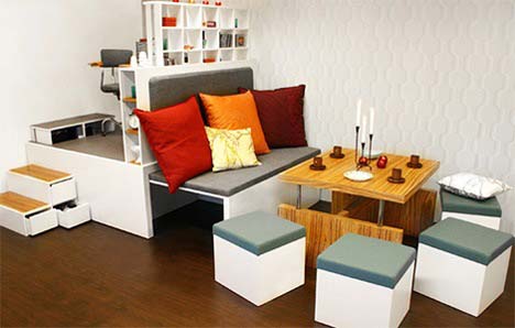 茶幾瞬間變成了餐桌,一堆矮凳從沙發(fā)底下鉆出來,變身成功!不過這還沒完&helli你想想,吃飽了玩兒累了,如果有一張寬敞的大床該多好?
