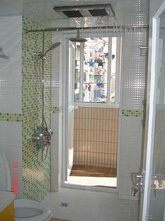 這個(gè)浴室在開在陽(yáng)臺(tái)口的,設(shè)計(jì)相當(dāng)獨(dú)特!很通風(fēng),洗曬衣物也很方便。